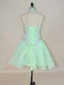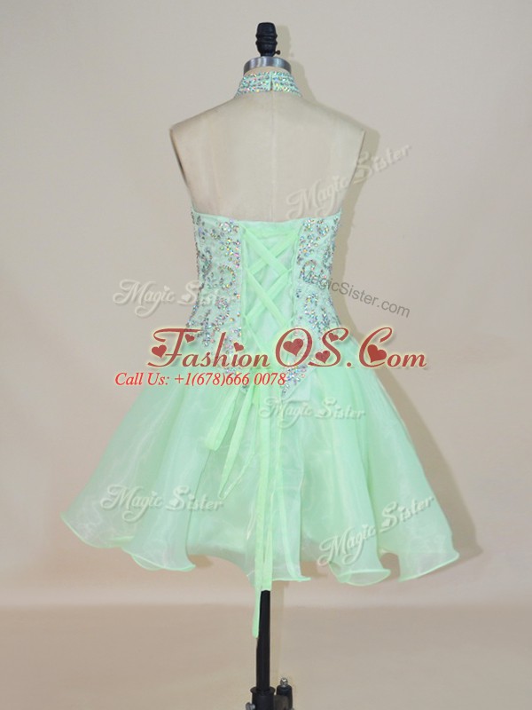Flare Apple Green Sleeveless Mini Length Beading Lace Up Homecoming Dress