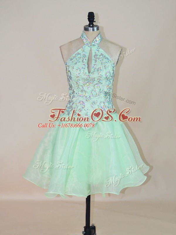 Home >  Prom Dresses >  Prom Dresses 2019 > Flare Apple Green Sleeveless Mini Length Beading Lace Up Homecoming Dress