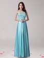 Home >  Prom Dresses >  Elegant Prom Dresses > Flare Aqua Blue Empire Elastic Woven Satin Sweetheart Sleeveless Beading and Appliques and Bowknot Floor Length Zipper Prom Party Dress