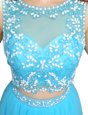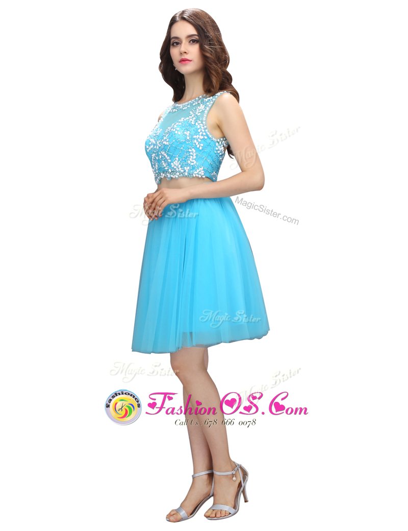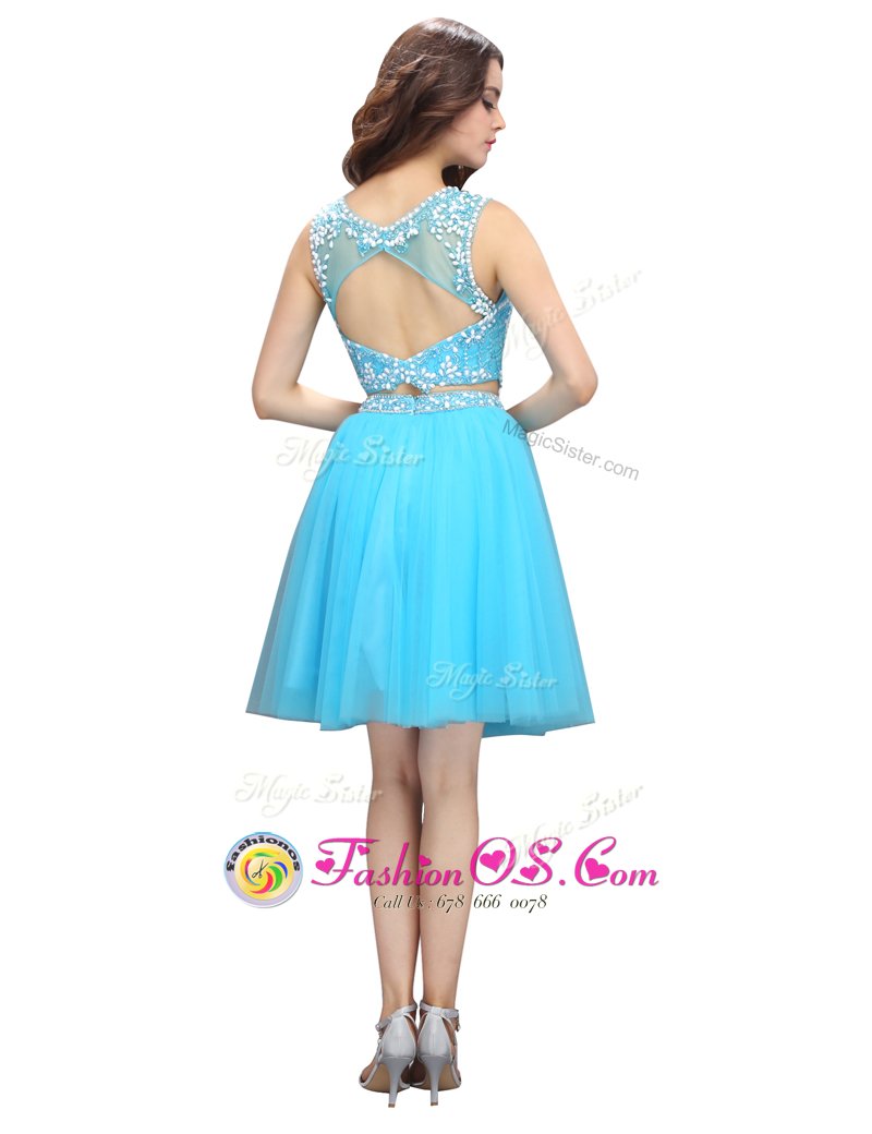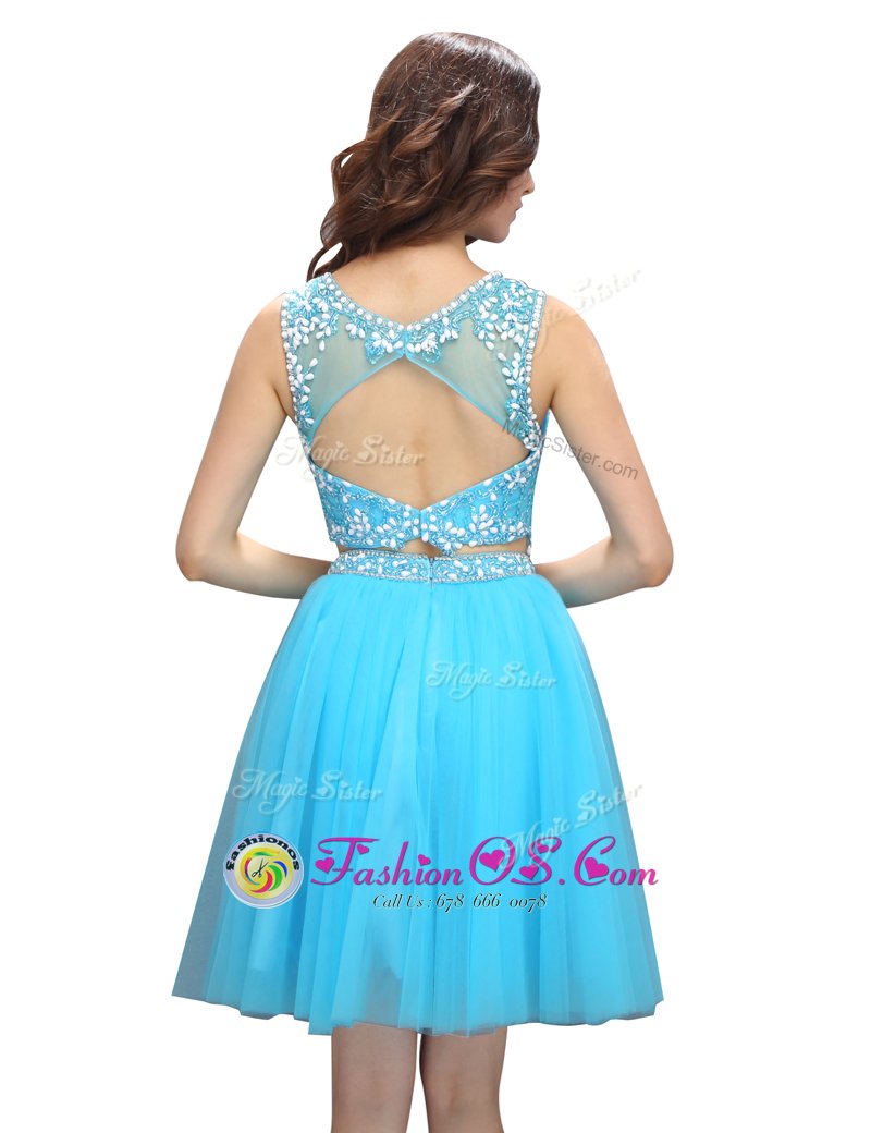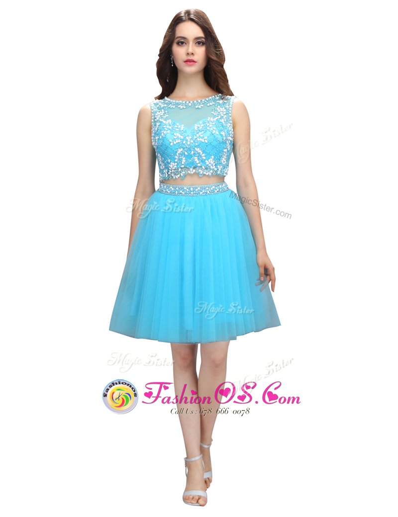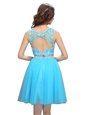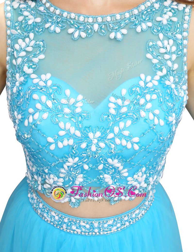Flare Baby Blue Backless Scoop Appliques Prom Dress Tulle Sleeveless