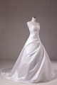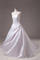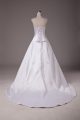 Flare Beading Wedding Gowns White Lace Up Sleeveless Brush Train