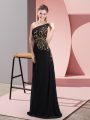 Flare Black Column/Sheath Chiffon One Shoulder Sleeveless Beading Floor Length Side Zipper Evening Dress