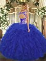 Flare Floor Length Eggplant Purple Quince Ball Gowns Organza Cap Sleeves Beading and Ruffles