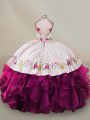 Home >  Quinceanera Dresses >  Quinceanera Dresses 2019 > Flare Floor Length Fuchsia 15th Birthday Dress Halter Top Sleeveless Lace Up