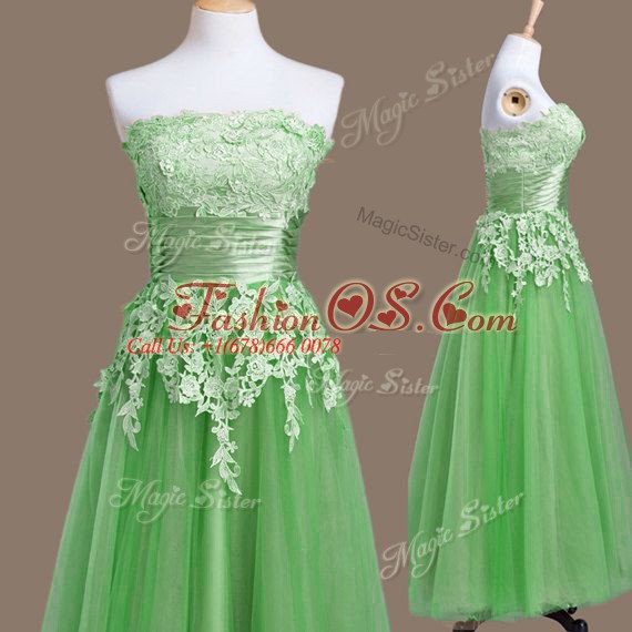 Flare Green Lace Up Strapless Appliques Quinceanera Court Dresses Tulle Sleeveless