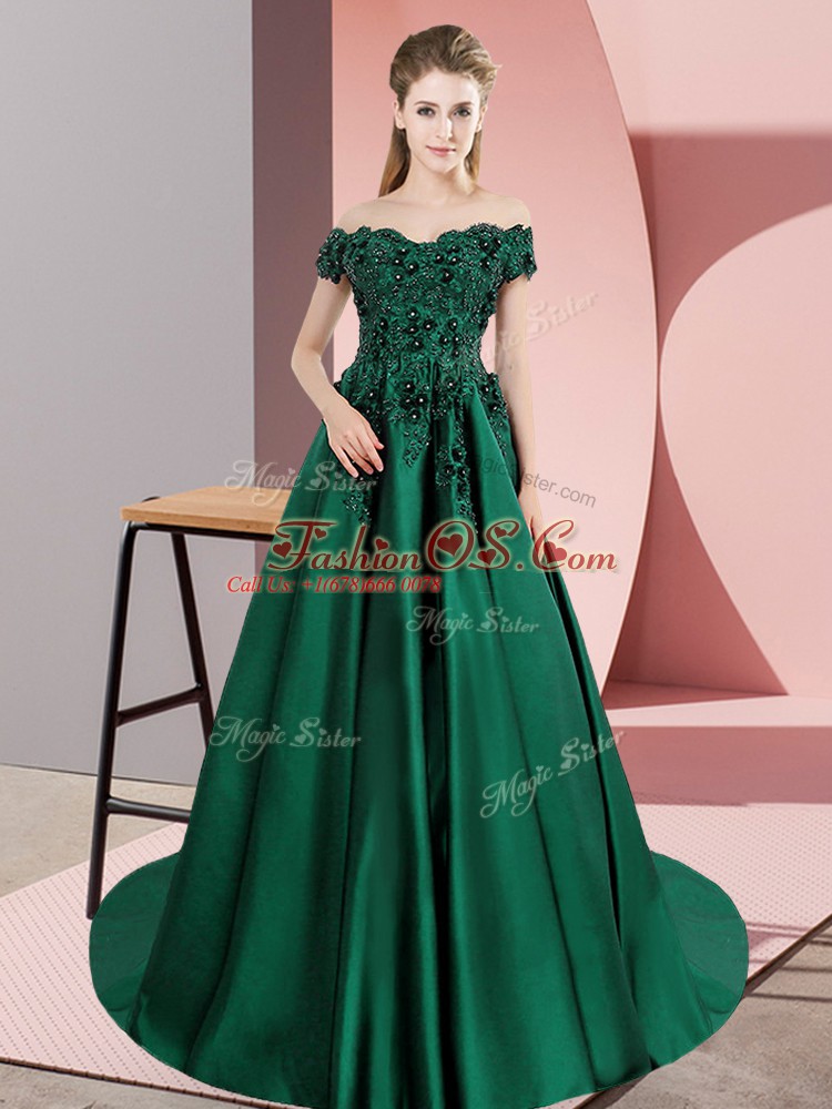 Flare Green Quinceanera Gown Sweet 16 and Quinceanera with Lace Off The Shoulder Sleeveless Court Train Zipper