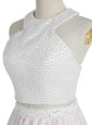 Home >  Prom Dresses >  Discount Prom Dresses > Flare Lace Pink And White Prom Gown Prom and For with Beading Halter Top Sleeveless Zipper
