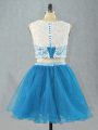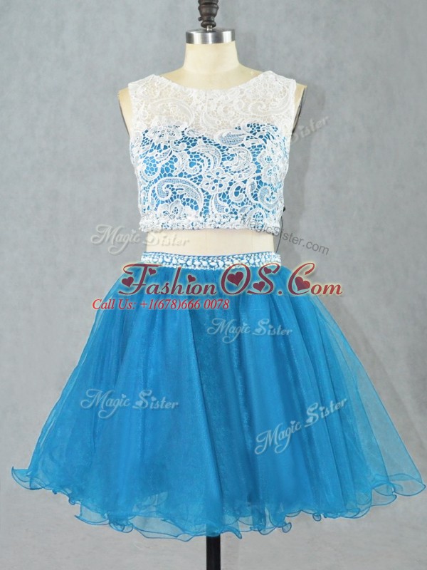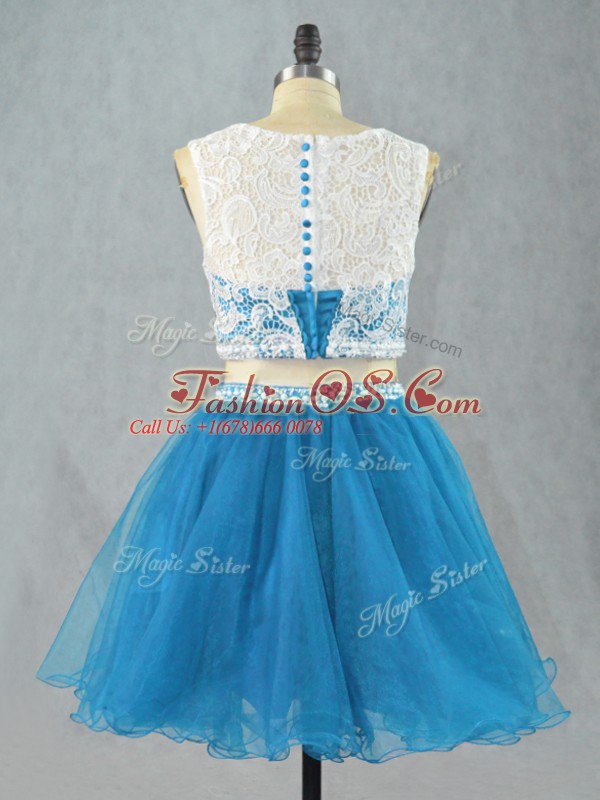 Flare Mini Length Blue Juniors Party Dress Scoop Sleeveless Zipper