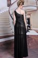 Flare One Shoulder Sleeveless Chiffon Appliques Side Zipper
