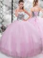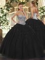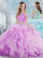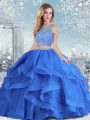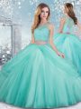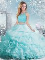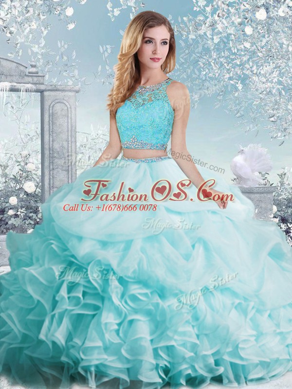 Flare Organza Scoop Sleeveless Clasp Handle Beading and Ruffles and Pick Ups 15 Quinceanera Dress in Aqua Blue
