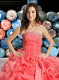Flare Organza Sweetheart Sleeveless Lace Up Beading and Ruffles 15 Quinceanera Dress in Coral Red