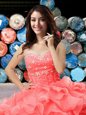 Home >  Quinceanera Dresses >  Custom Made Quinceanera Dresses > Flare Organza Sweetheart Sleeveless Lace Up Beading and Ruffles 15 Quinceanera Dress in Coral Red