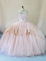 Flare Peach Tulle Lace Up Quinceanera Gowns Sleeveless Beading and Lace and Appliques
