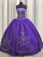 Flare Purple Ball Gowns Strapless Sleeveless Taffeta Floor Length Lace Up Beading and Embroidery Sweet 16 Dress