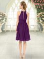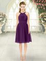 Flare Purple Sleeveless Ruching Knee Length Dress for Prom