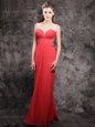 Flare Red Sleeveless Floor Length Appliques Zipper Homecoming Dress