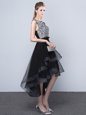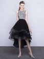 Home >  Prom Dresses >  Perfect Prom Dresses > Flare Scoop Black Sleeveless High Low Beading Backless Evening Dress