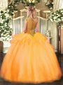 Flare Scoop Cap Sleeves 15th Birthday Dress Floor Length Beading Yellow Green Organza