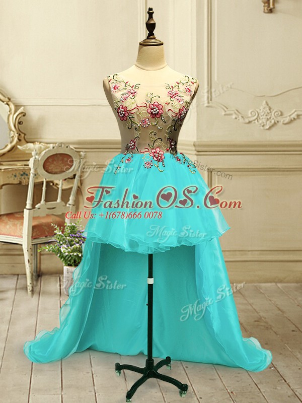 Home >  Prom Dresses >  Perfect Prom Dresses > Flare Scoop Sleeveless Lace Up Evening Dress Aqua Blue Organza