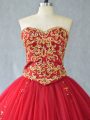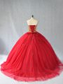 Flare Sleeveless Brush Train Beading Lace Up 15th Birthday Dress