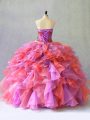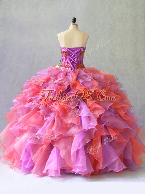 Flare Sleeveless Floor Length Beading and Ruffles Lace Up Sweet 16 Dress with Multi-color