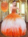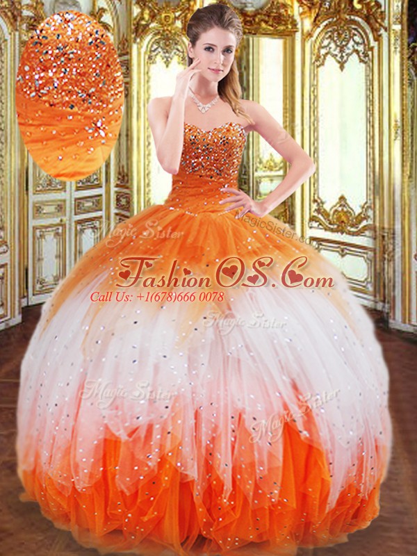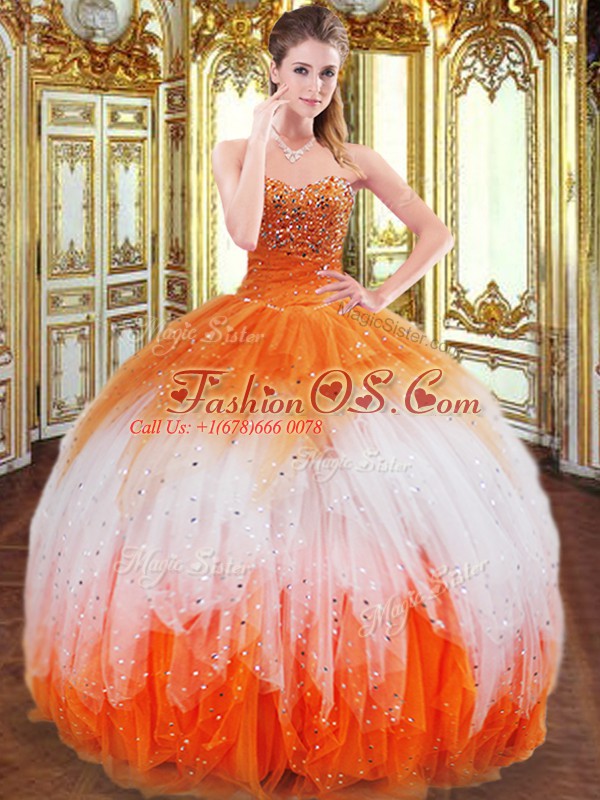 Flare Sleeveless Floor Length Beading and Ruffles Lace Up Sweet 16 Dresses with Multi-color