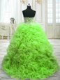 Flare Sleeveless Sweep Train Beading and Ruffles Vestidos de Quinceanera
