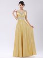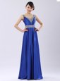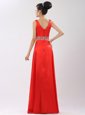 Flare V-neck Sleeveless Satin Formal Dresses Beading Zipper