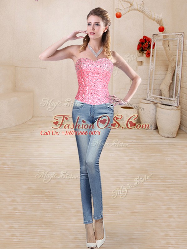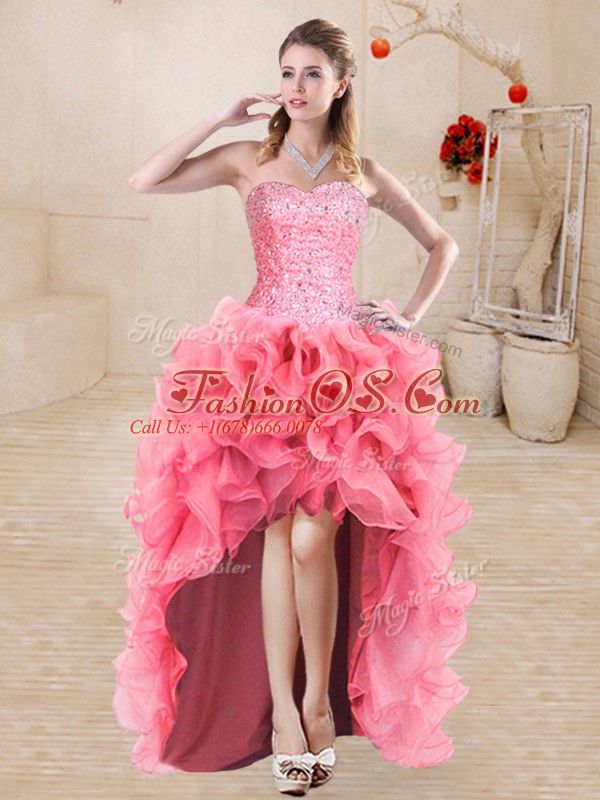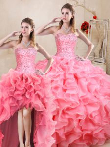 Home >  Quinceanera Dresses >  Detachable Quinceanera Skirts > Flare Watermelon Red Sweetheart Neckline Beading and Ruffles Quince Ball Gowns Sleeveless Lace Up