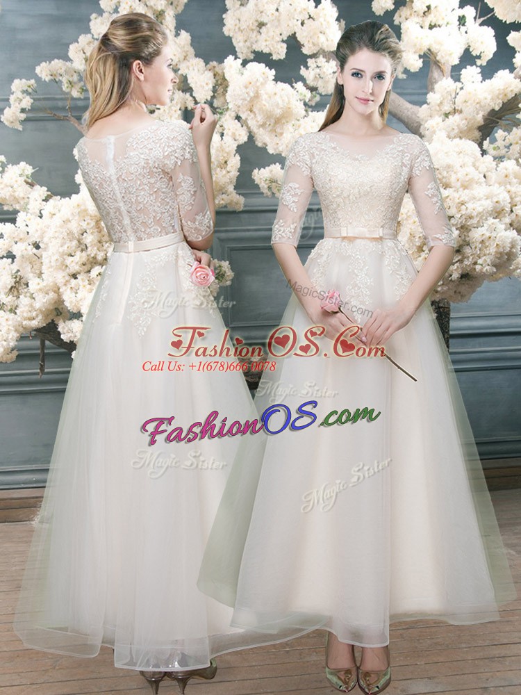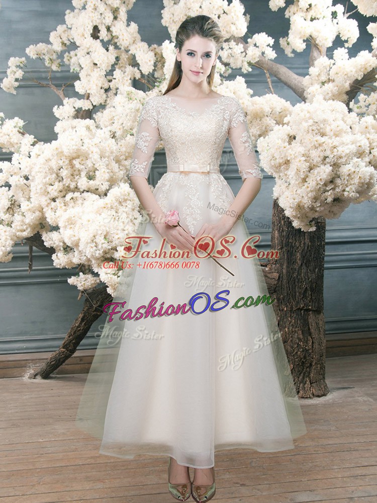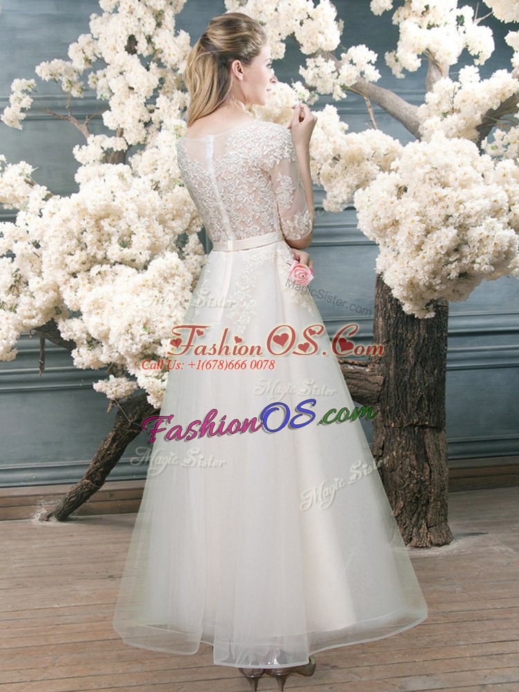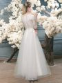 Flare White A-line Lace Prom Dresses Zipper Organza Half Sleeves