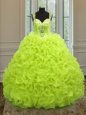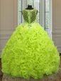 Flare Yellow Green Straps Zipper Beading and Ruffles Quinceanera Dress Sleeveless