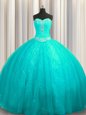 Home >  Quinceanera Dresses >  15 Quinceanera Dresses > Flirting Aqua Blue Organza and Sequined Lace Up Quinceanera Dresses Sleeveless Court Train Beading and Appliques