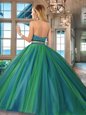 Flirting Dark Green Halter Top Backless Beading Quinceanera Gown Brush Train Sleeveless