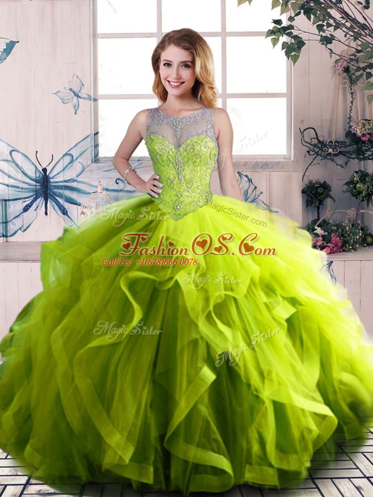 Home >  Quinceanera Dresses >  In Stock Quinceanera Dresses > Flirting Floor Length Lace Up Sweet 16 Dress Olive Green for Sweet 16 and Quinceanera with Beading and Ruffles