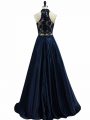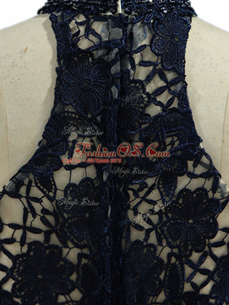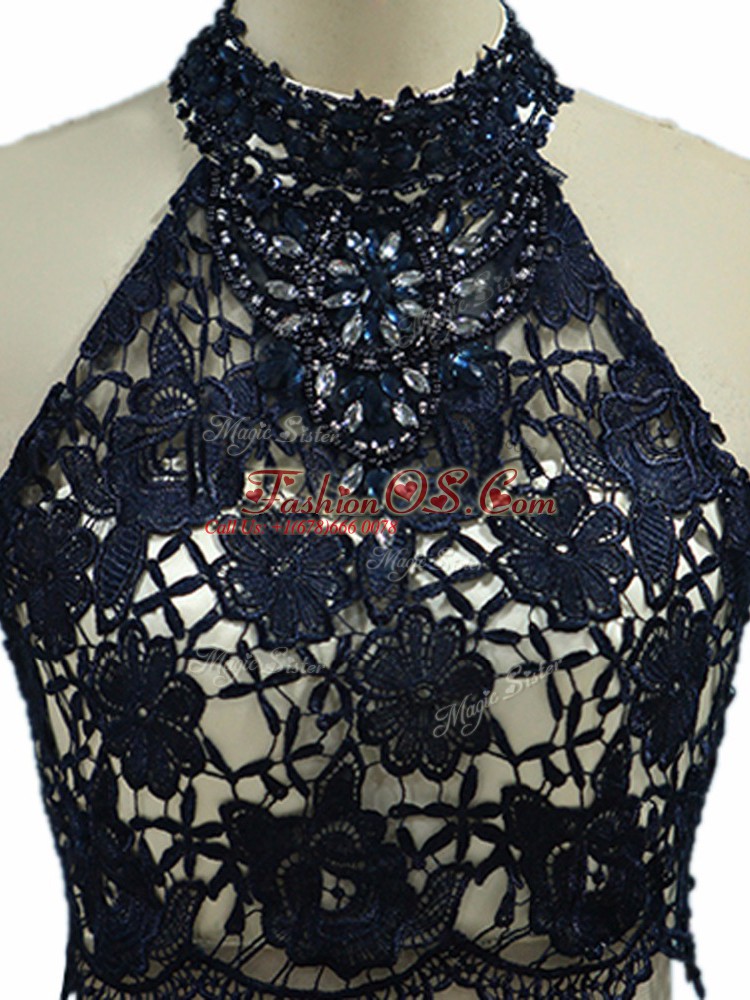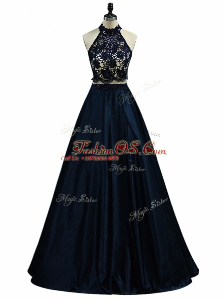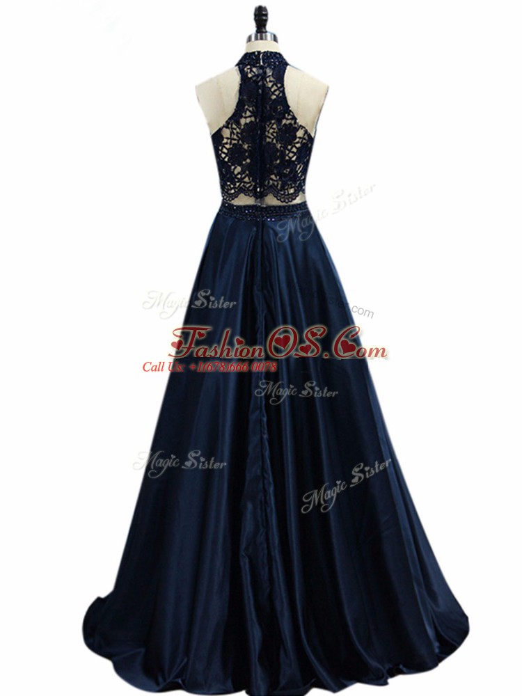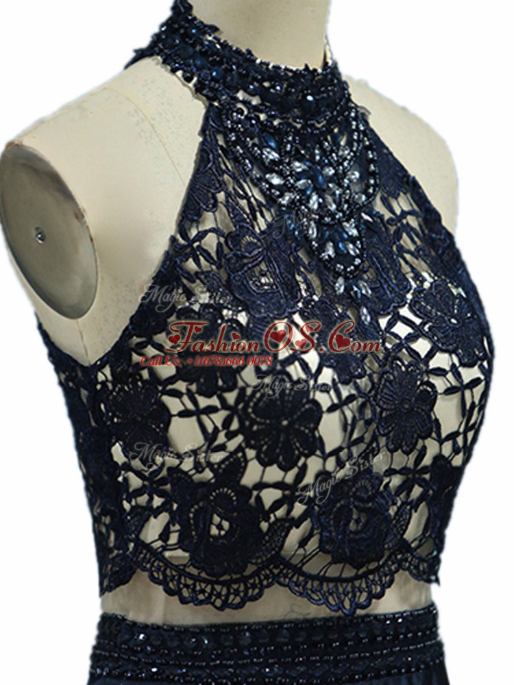 Flirting Floor Length Two Pieces Sleeveless Navy Blue Homecoming Gowns Zipper