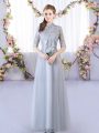 Flirting High-neck Half Sleeves Bridesmaid Dresses Floor Length Lace Grey Tulle