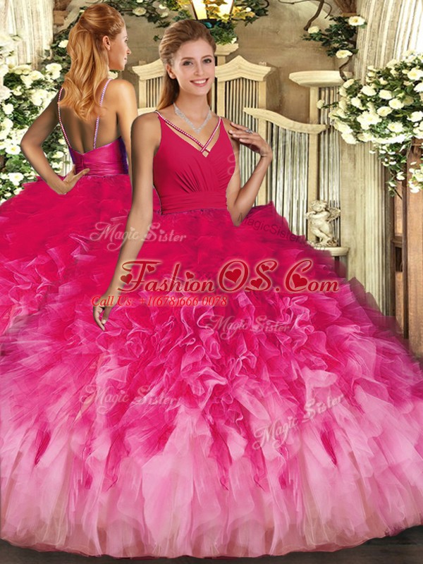 Flirting Multi-color Sleeveless Ruffles Floor Length Sweet 16 Dresses