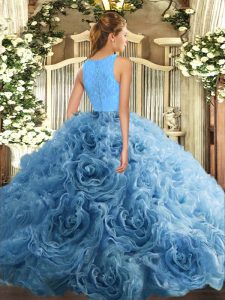 Flirting Organza and Fabric With Rolling Flowers Scoop Sleeveless Zipper Beading and Lace Quinceanera Gowns in Blue