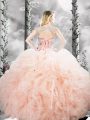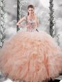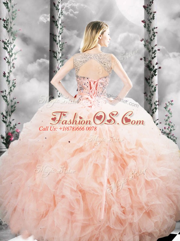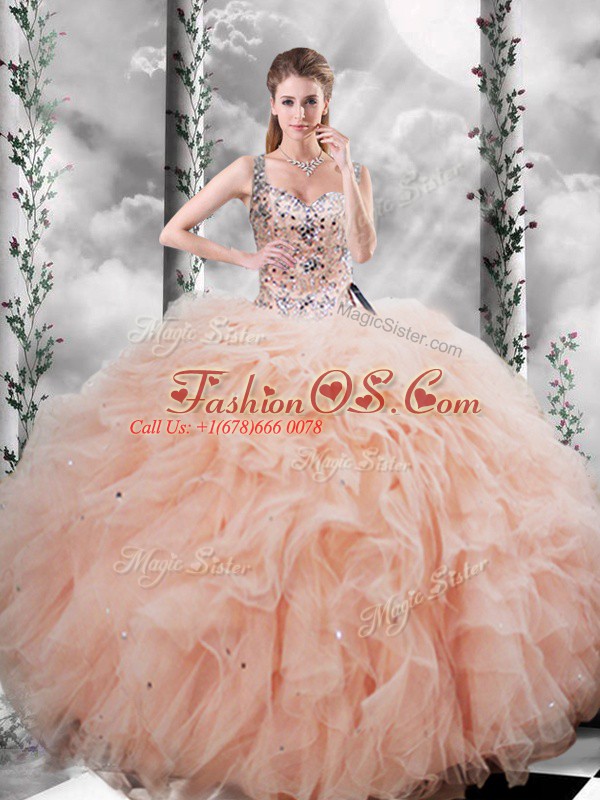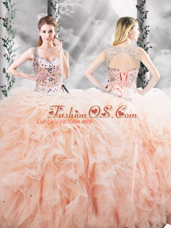 Flirting Peach Sleeveless Beading and Ruffles Floor Length Sweet 16 Dresses