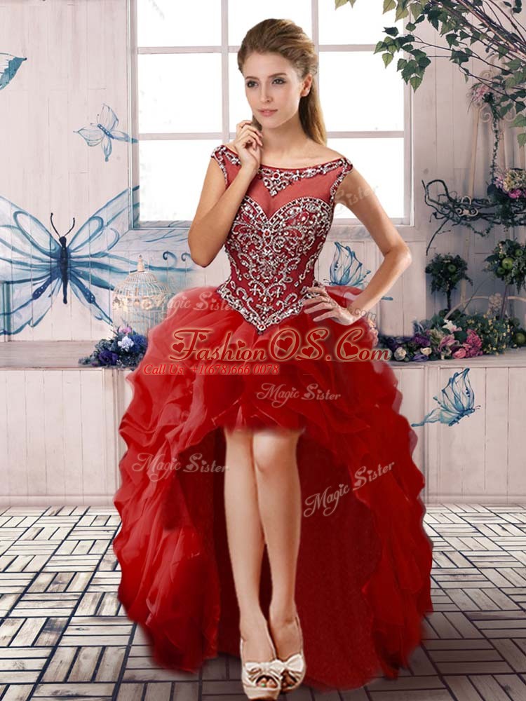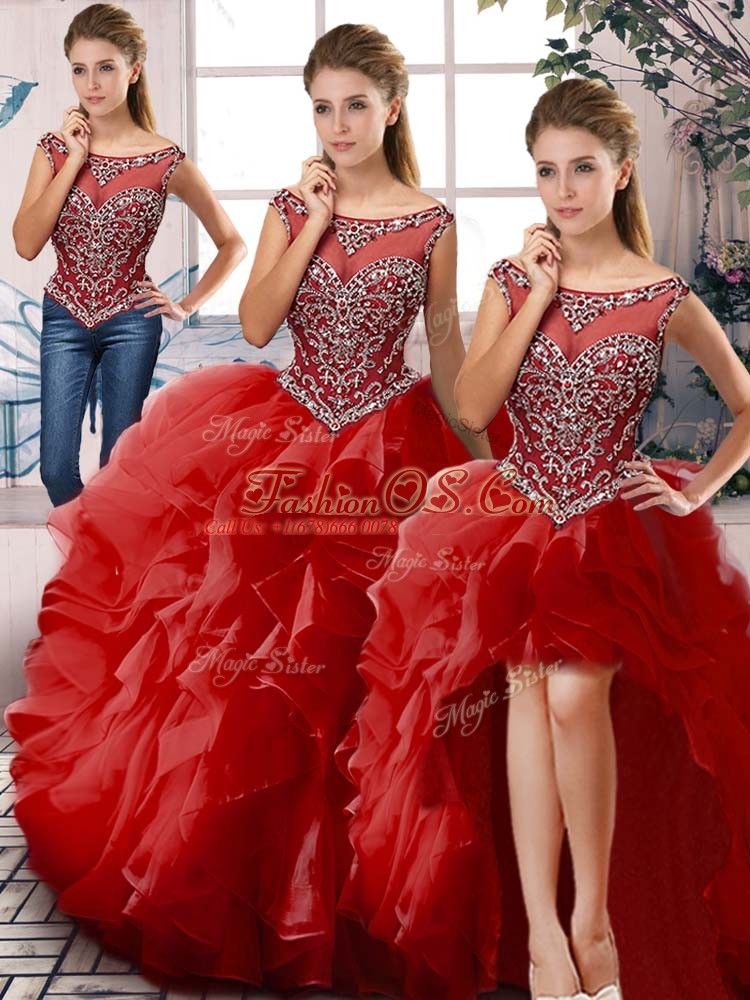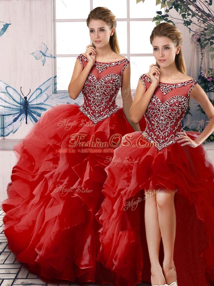 Flirting Red 15th Birthday Dress Sweet 16 and Quinceanera with Beading and Ruffles Scoop Sleeveless Zipper