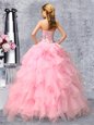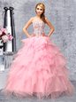 Flirting Rose Pink Sweet 16 Quinceanera Dress Military Ball and Sweet 16 and Quinceanera and For with Beading and Ruffles Sweetheart Sleeveless Lace Up