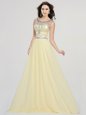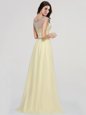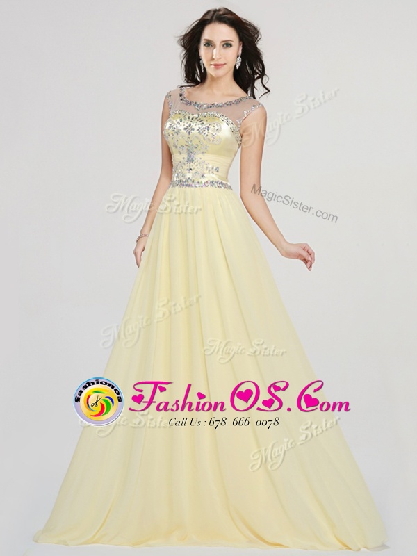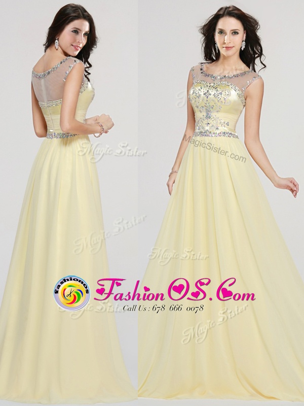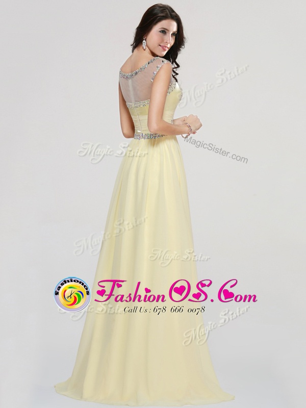 Flirting Scoop Floor Length Light Yellow Chiffon Sleeveless Beading