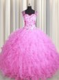 Home >  Quinceanera Dresses >  Clearance Quinceanera Dresses > Flirting See Through Zipper Up Tulle Square Sleeveless Zipper Beading and Ruffles Quinceanera Dress in Rose Pink