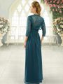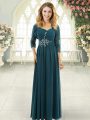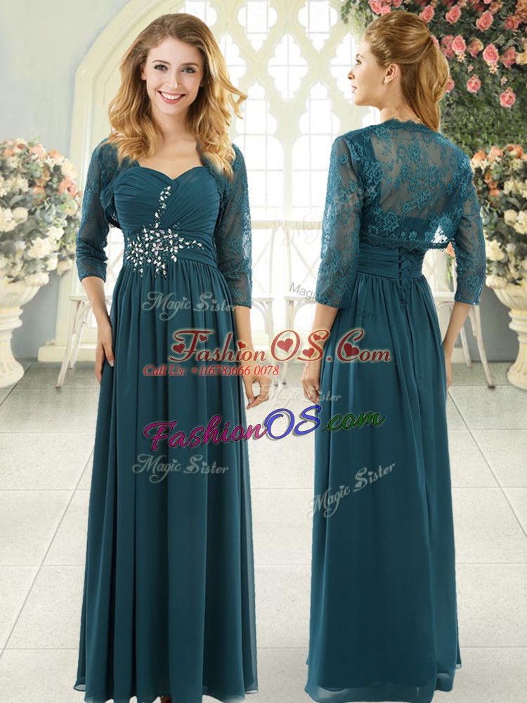 Home >  Prom Dresses >  Perfect Prom Dresses > Flirting Short Sleeves Chiffon Sweep Train Zipper Prom Dresses in Teal with Beading and Ruching