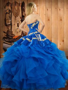 Flirting Sleeveless Floor Length Embroidery and Ruffles Lace Up Sweet 16 Dresses with Rust Red