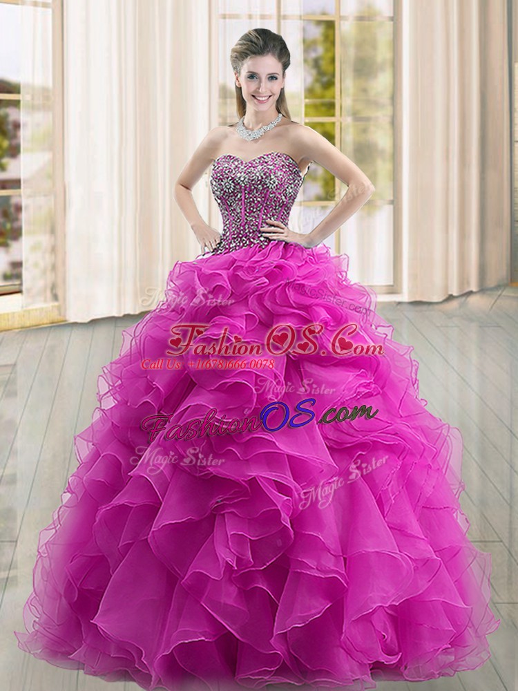 Flirting Sweetheart Sleeveless Lace Up Sweet 16 Dresses Fuchsia Organza