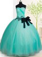 Flirting Sweetheart Sleeveless Quinceanera Gown Floor Length Beading and Bowknot Turquoise Tulle