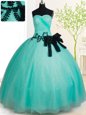 Home >  Quinceanera Dresses >  Clearance Quinceanera Dresses > Flirting Sweetheart Sleeveless Quinceanera Gown Floor Length Beading and Bowknot Turquoise Tulle