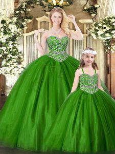Flirting Tulle Sleeveless Floor Length Ball Gown Prom Dress and Beading