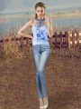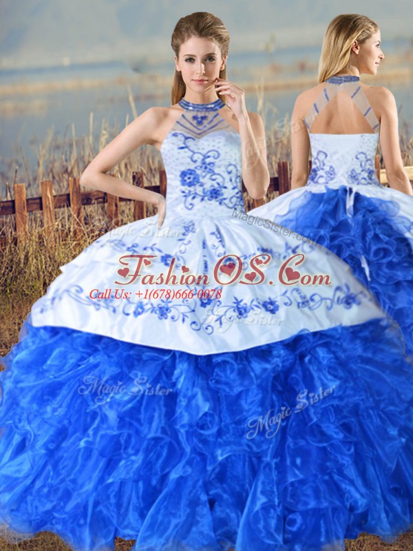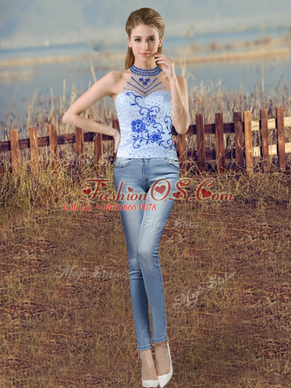 Flirting Two Pieces Sleeveless Blue And White Sweet 16 Dresses Court Train Lace Up
